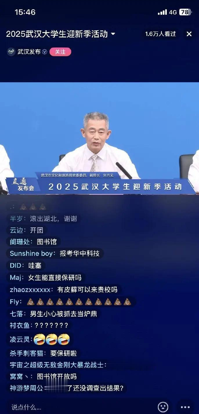 8月26日,武汉市文旅局联合“武汉发布”推出的“2025武汉大学生迎新季”官方直播,本该是给新生们展示校园风貌、答疑解惑的环节,却被成千上万愤怒的网友变成了“吐槽大会”。有人在弹幕里高呼“滚出湖北”,有人嘲讽“图书馆还开吗?先问问母校挠痒痒算不算性骚扰”,还有人质问“26天了,调查结果还没出来吗?”直播观看人数一度超过2万,弹幕声量直冲云霄。仅仅过了十分钟,这场直播的评论区被迫关闭,这场所谓的迎新直播变成了大型社死翻车现场,个中缘由值得反思。