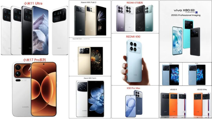 一加8T赛博朋克2077限定版、真我GT Neo5/GT Neo5 SE;小米11 Ultra、小米MIX Fold2/3/4、小米17 Pro系列;REDMI K70/K90系列;vivo X80系列、vivo X Note/vivo X Fold、iQOO 9/9 Pro;iPhone 17 Pro系列、爆料中的三星Galaxy S26 Edge。