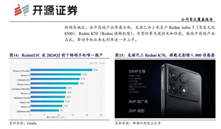 开源证券在报告中表示↑ ,REDMI K70、即将首发天玑8500的REDMI Turbo5都是龙旗代工,不知道荣耀WIN2系列是不是龙旗代工?(最新的ODM出货量占比↓)。